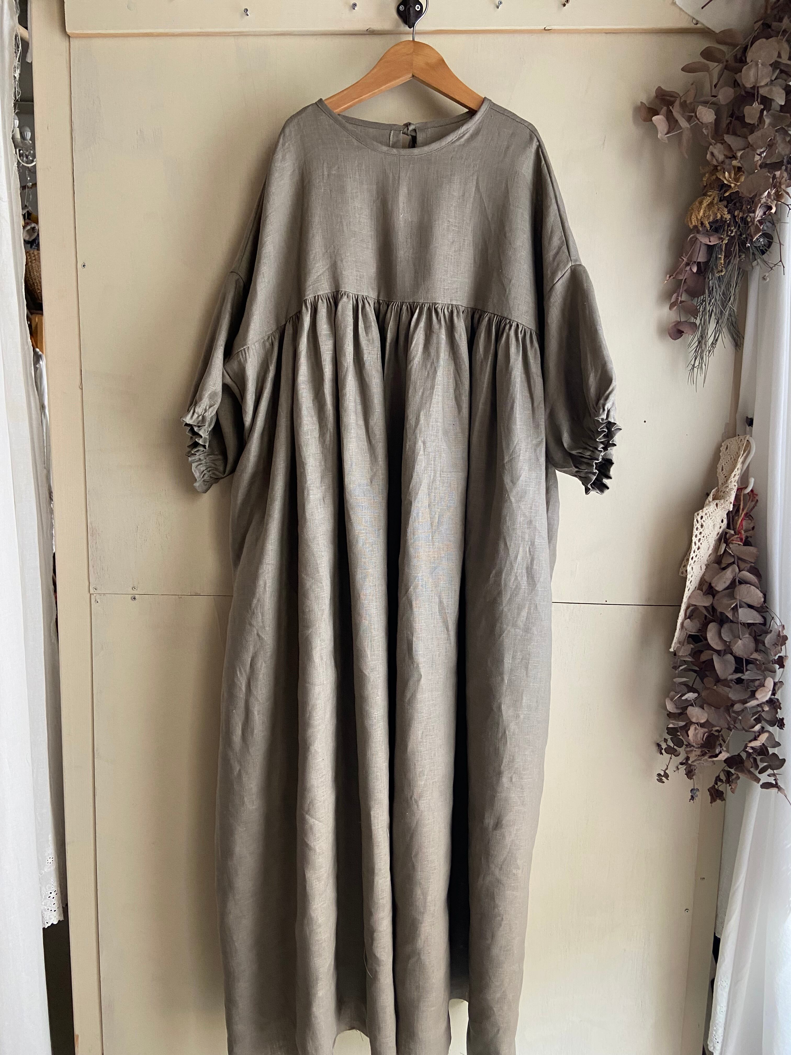 ヨークギャザーワンピース/カーキ(ブラウン系)/フレンチリネン