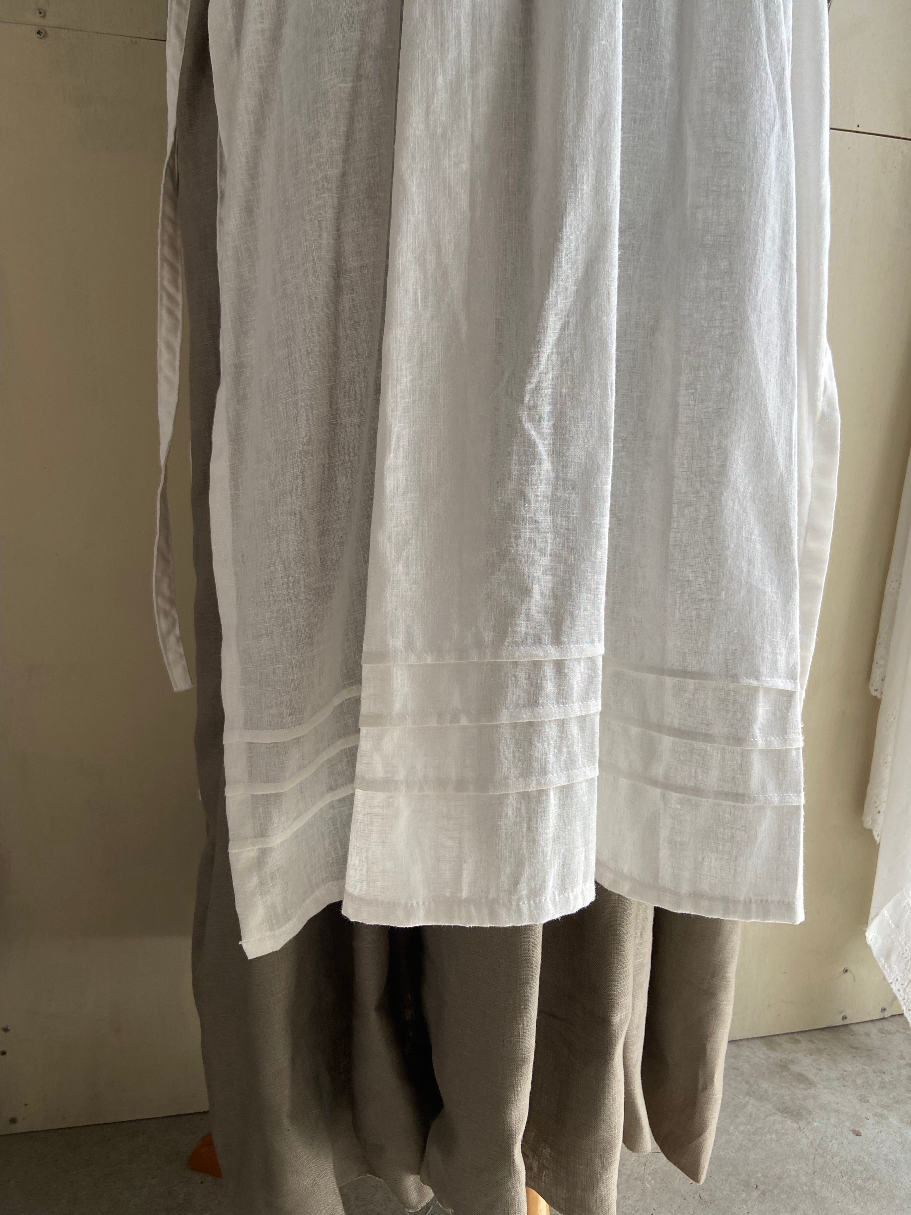 コットンリネンのオフホワイトと可憐なレース生地を使ったエプロンワンピース。