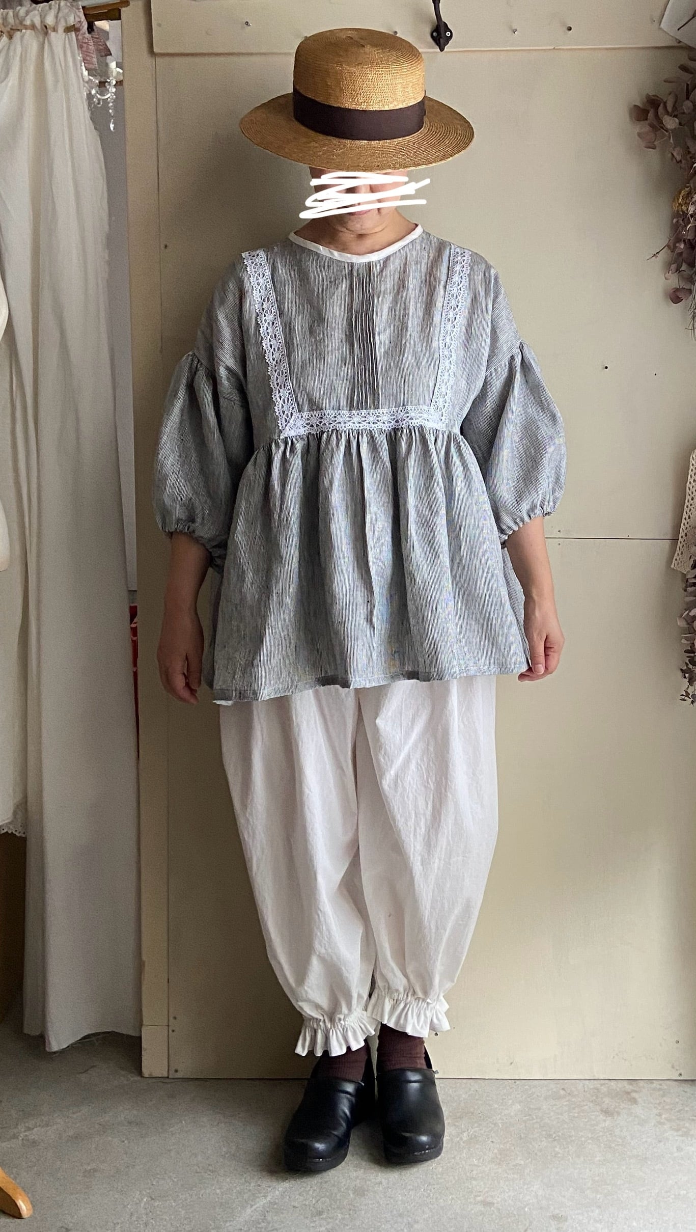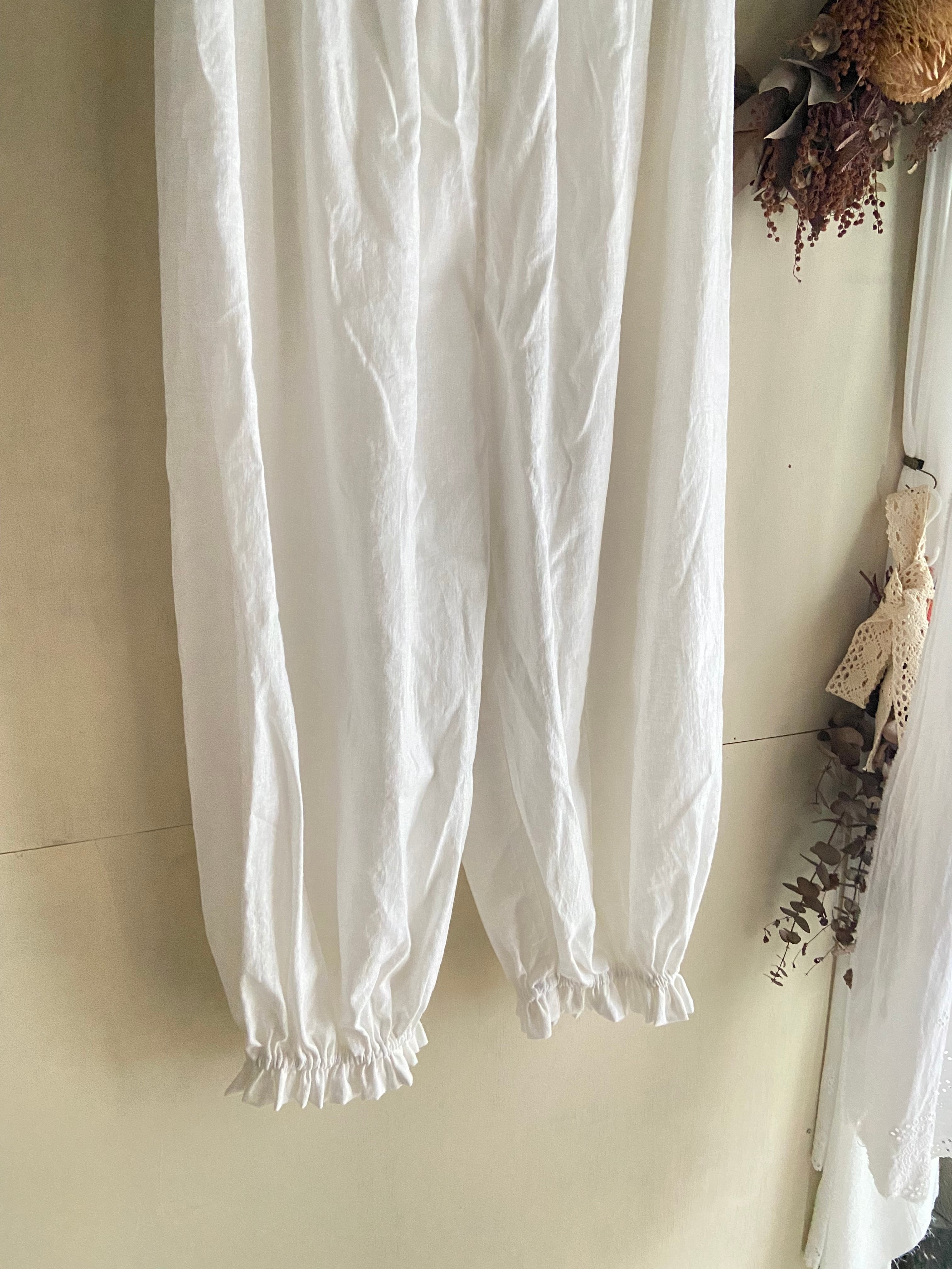コットンリネンの肌触り良い生地のドロワーズパンツ。