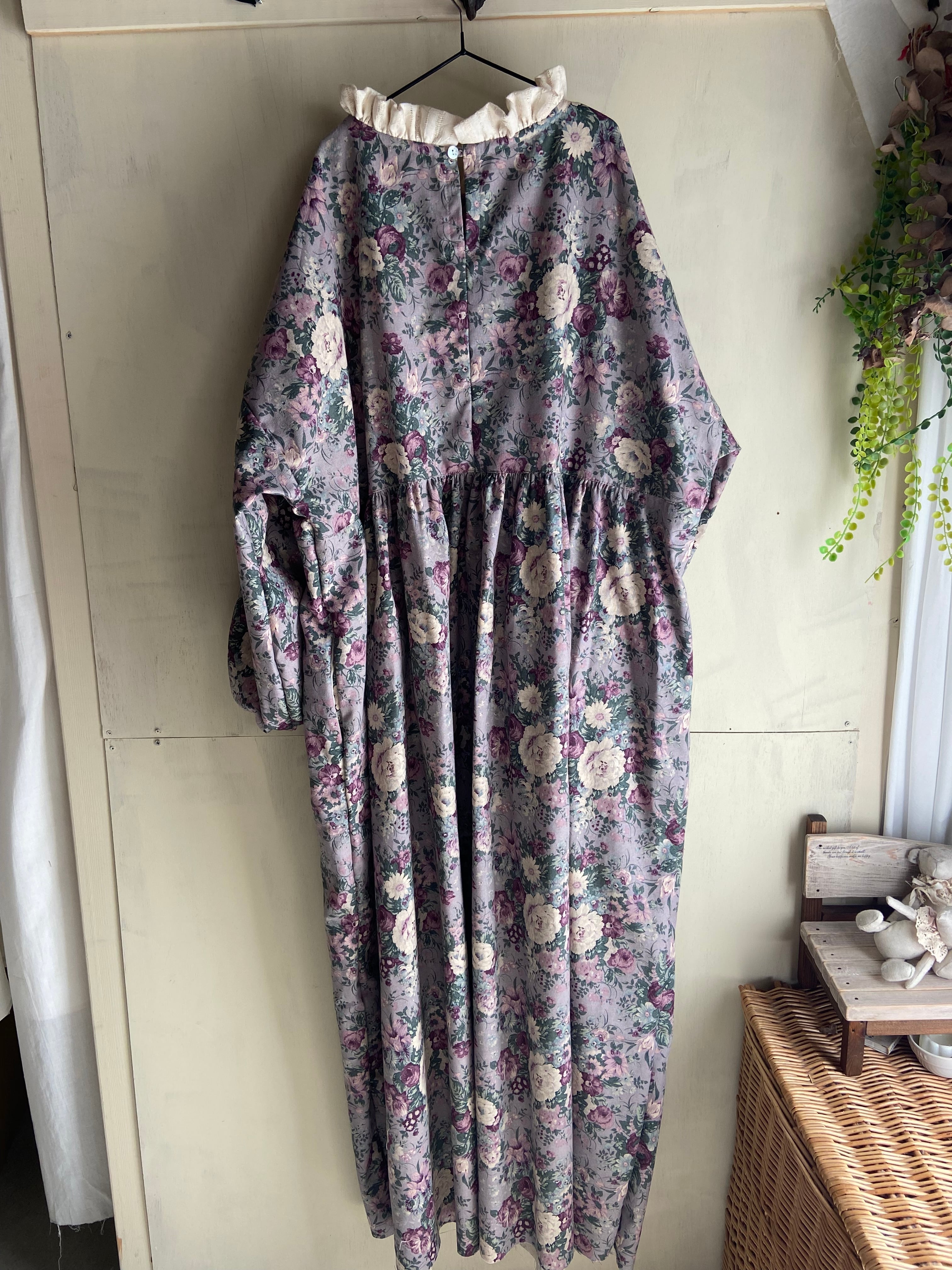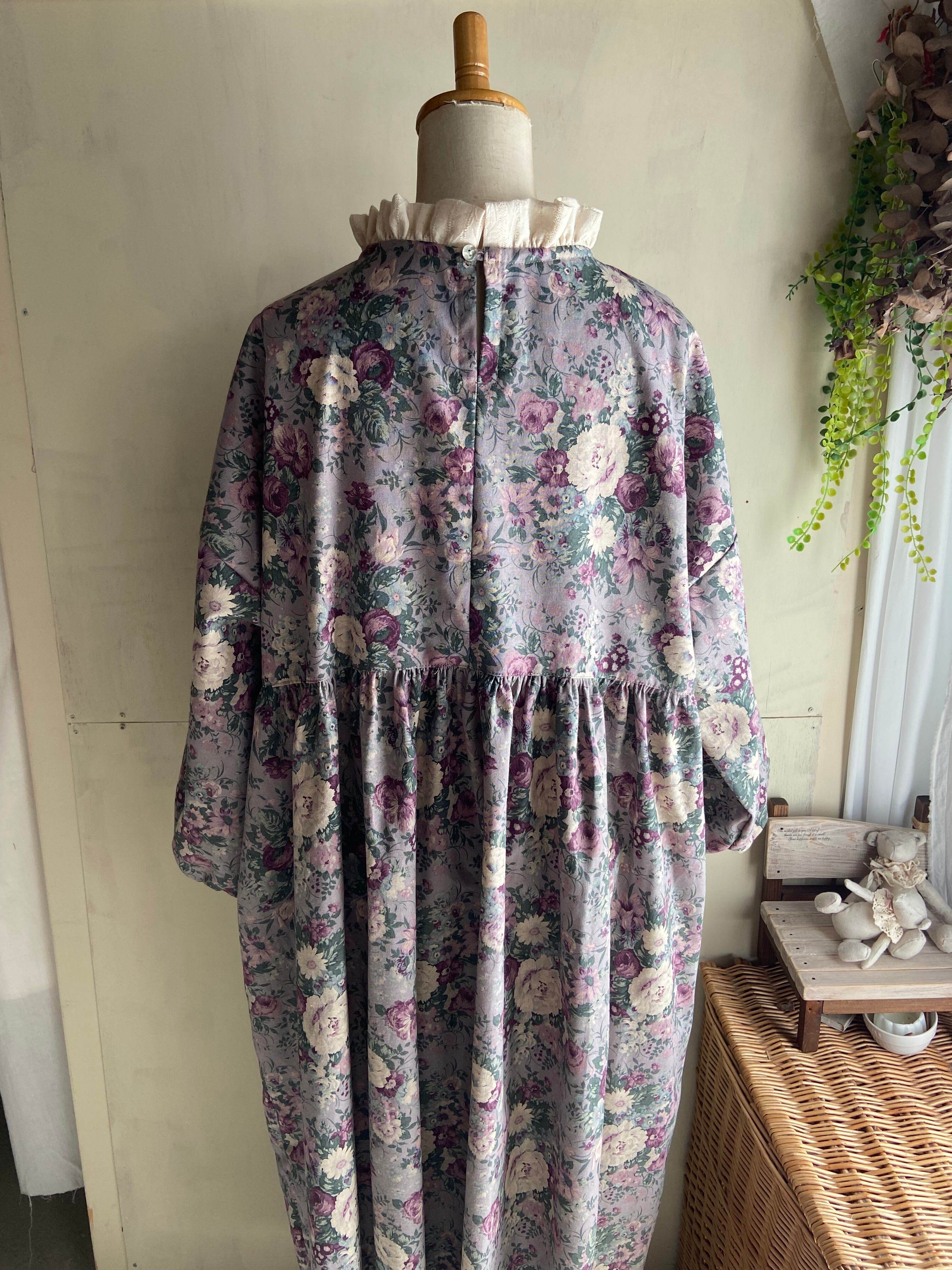 \再販/YUWAコットンリネン フリルギャザーワンピース 花柄