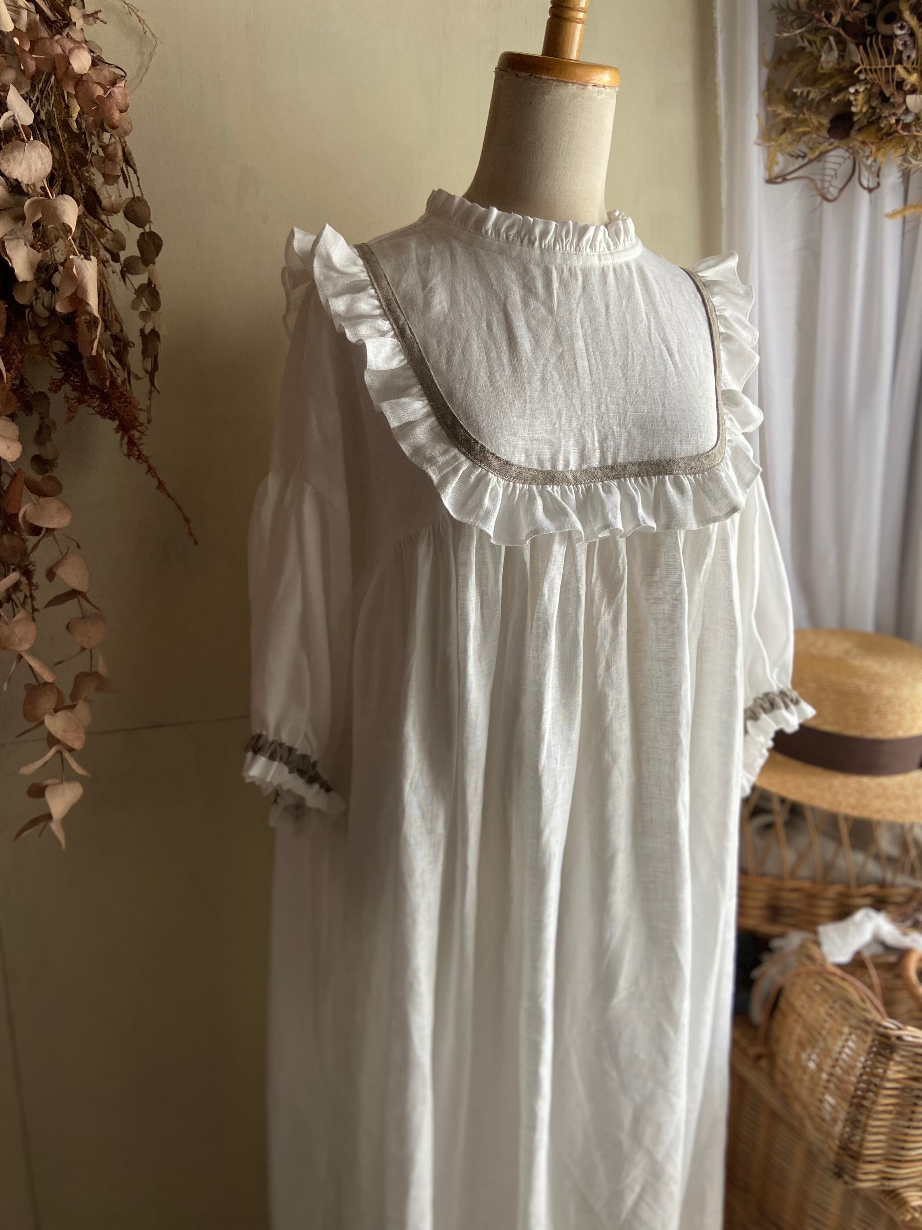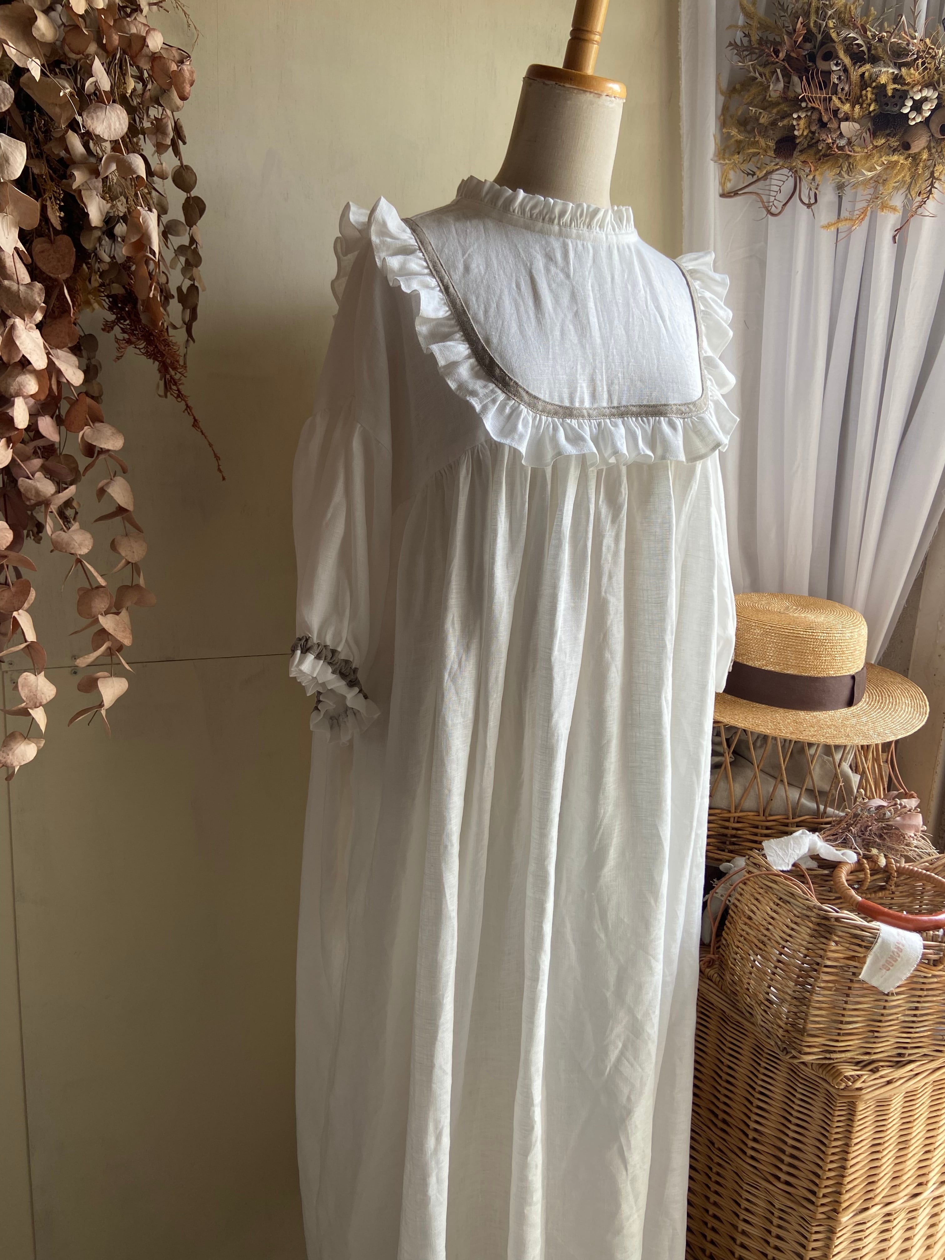 完成品 オフホワイト フリルアレンジのギャザーワンピース