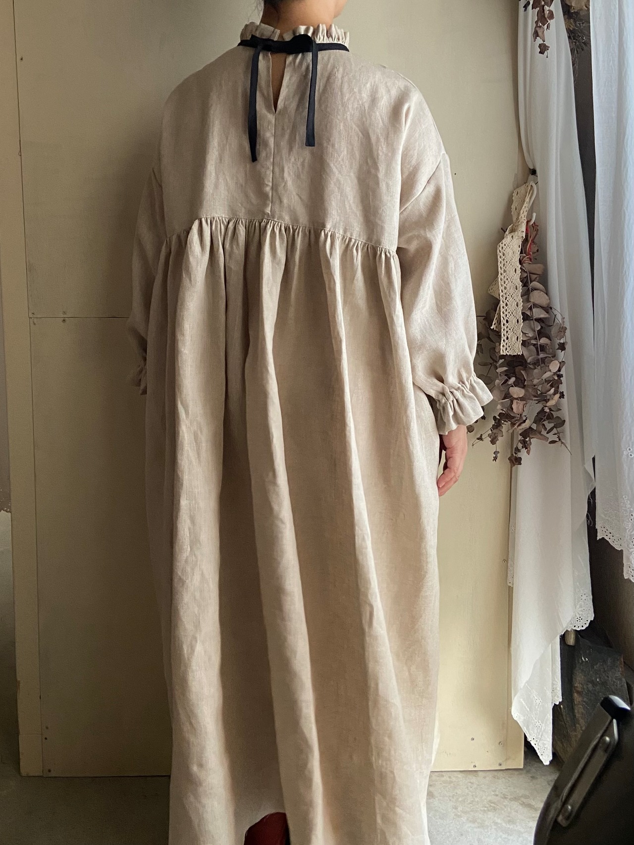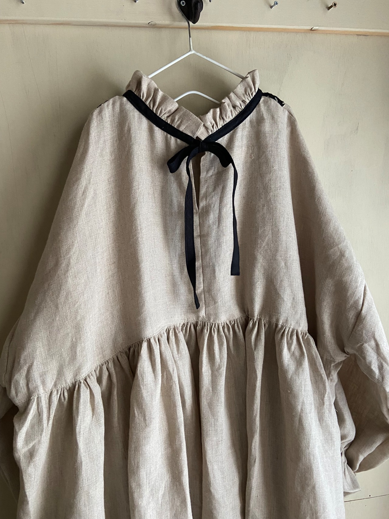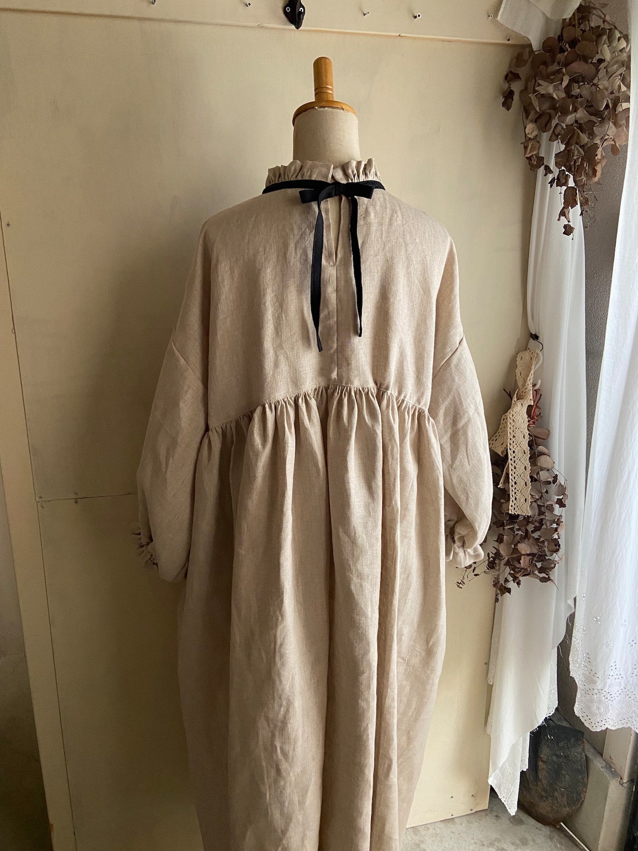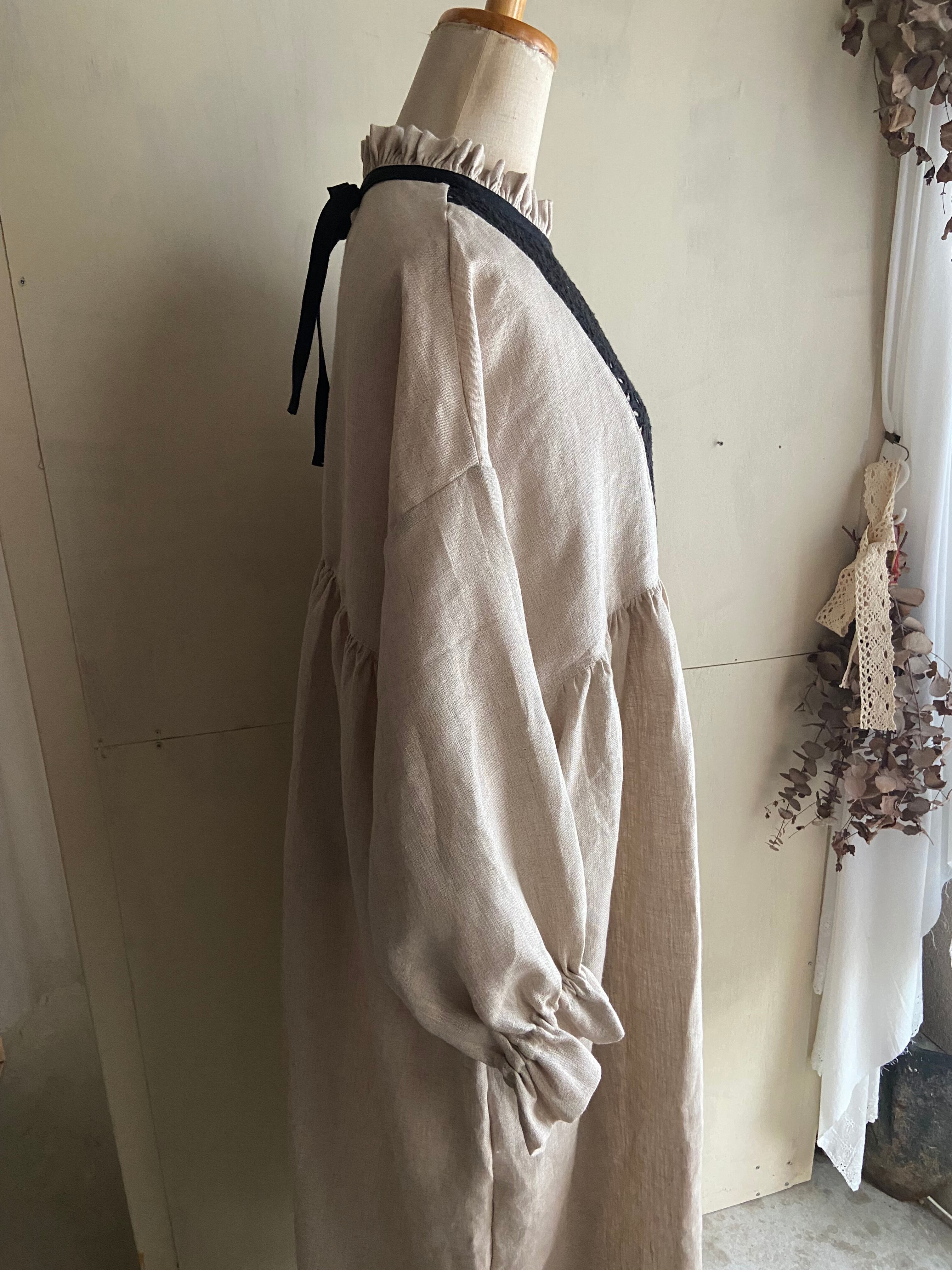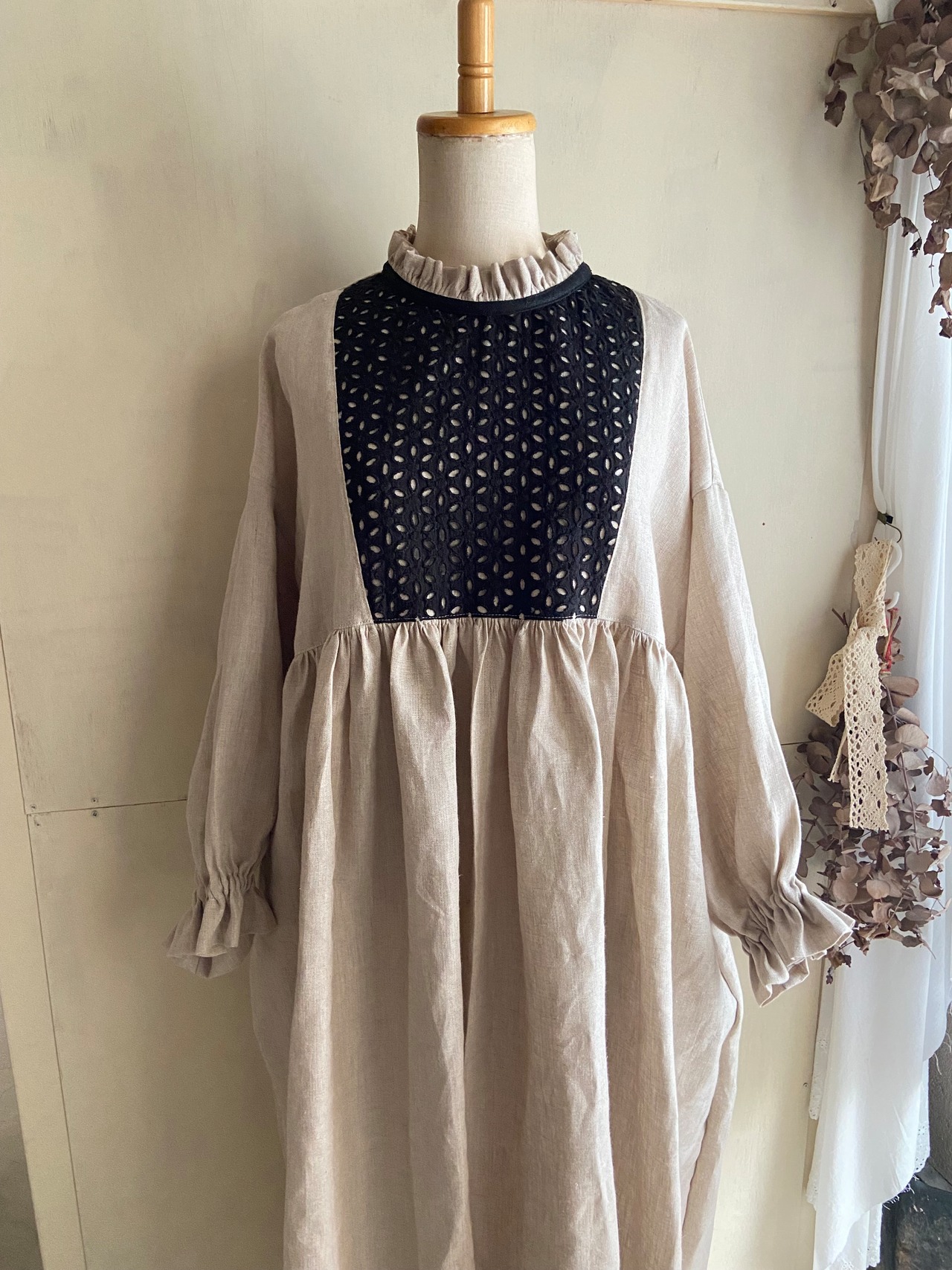 フレンチリネン生成りとブラックのレース生地を組み合わせてた