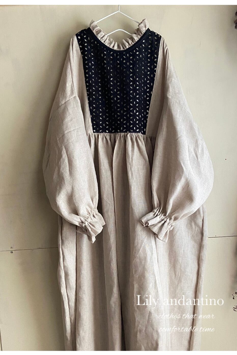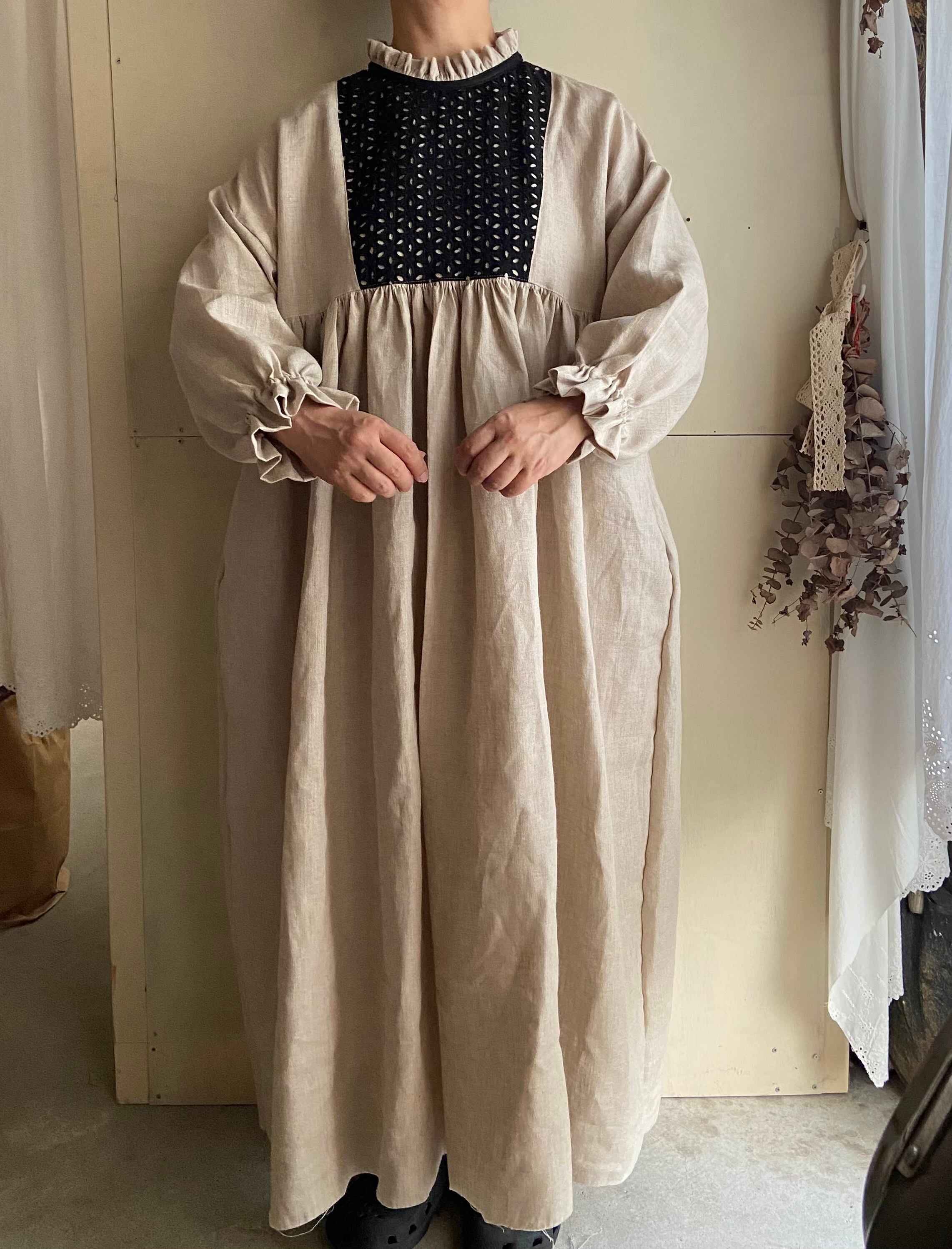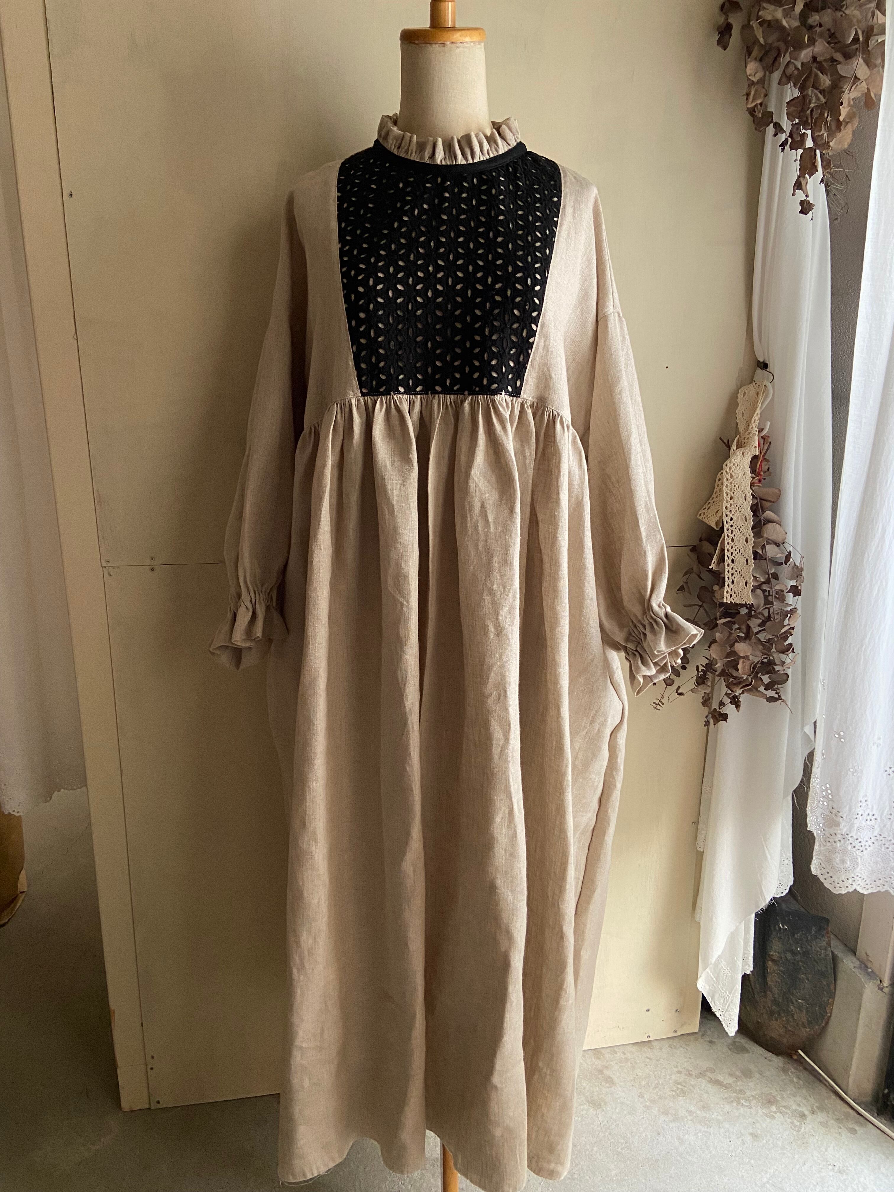 フリルブラックレース切り替えワンピース/生成り